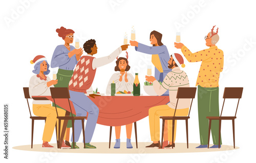 Happy family characters playing board game sitting at table, flat vector illustration. Parents with children spending time together, playing tabletop game and having fun. Home leisure activities.