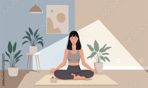 Happy family decorate christmas tree at home vector illustration. Parents with kid prepare house for festive season. Family celebrate winter holidays and xmas at home. Decorated house interior.