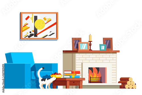 Vector illustration of happy family father, mother with two sons watching tv. Living room interior. Flat style design.
