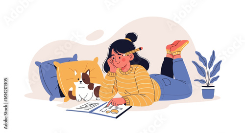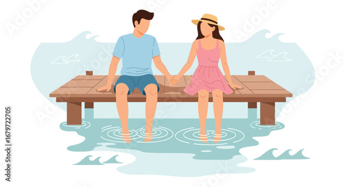 Happy father and son fishing together, flat vector illustration. Dad with kid spending time together. Parent and child relationship, happy fatherhood and parenting. Outdoor summer family activity.