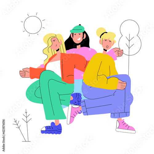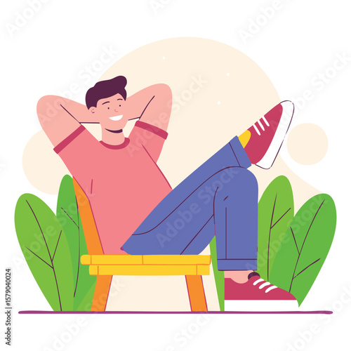Happy father and son fishing together, flat vector illustration. Dad with kid spending time together. Parent and child relationship, happy fatherhood and parenting. Outdoor summer family activity.