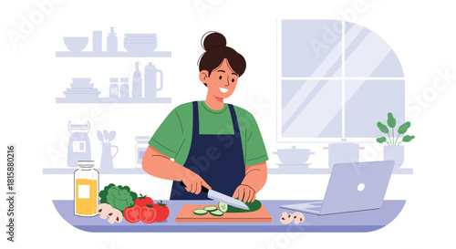 Happy father cooking pancakes with daughter in kitchen, flat vector illustration. Dad with kid spending time together preparing breakfast. Parent child relationship, happy fatherhood and parenting.