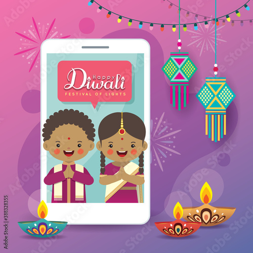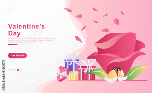 Happy girl blows candles on her birthday cake and enjoy her gifts. Birthday party vector concept illustration. Woman hanging up paper garlands to preparing the birthday party. Web site design.