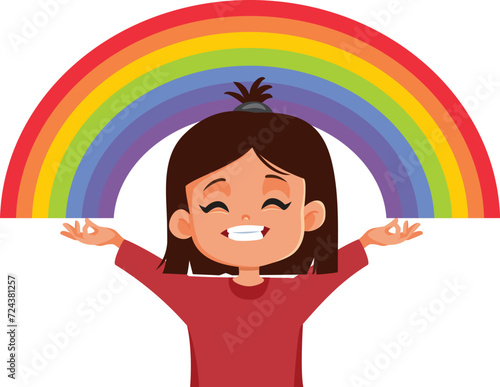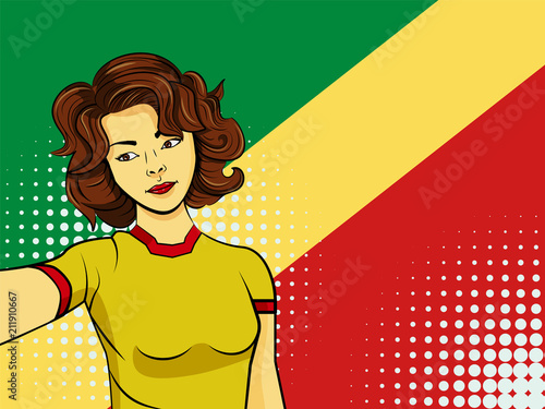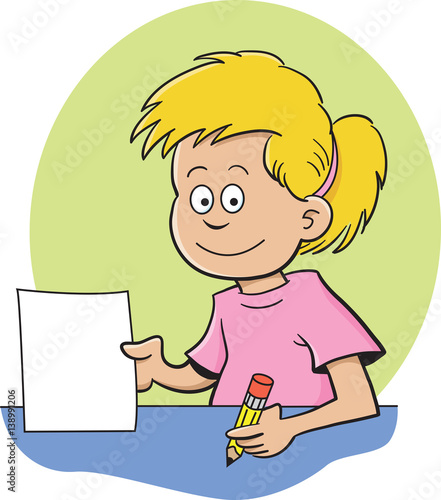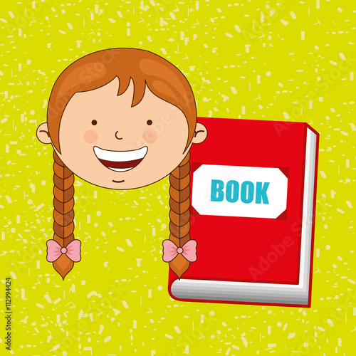 Happy girl hold a book in her hands. Vector illustration in comic retro pop art style. Back to school concept template.