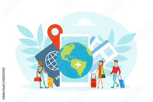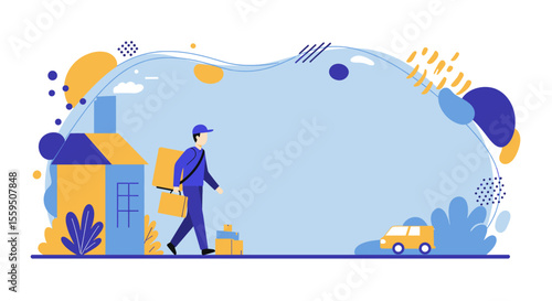 Happy girl making a snowman for christmas and new year holiday. Winter outdoor activities vector concept illustration. Winter games with snow. Web site design template.