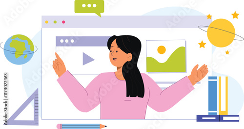 Woman making online payment with credit card, flat vector illustration. Happy girl shopping for clothing, groceries and other goods on the internet using mobile phone. E-commerce, online store.