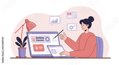 Woman making online payment with credit card, flat vector illustration. Happy girl shopping for clothing, groceries and other goods on the internet using mobile phone. E-commerce, online store.