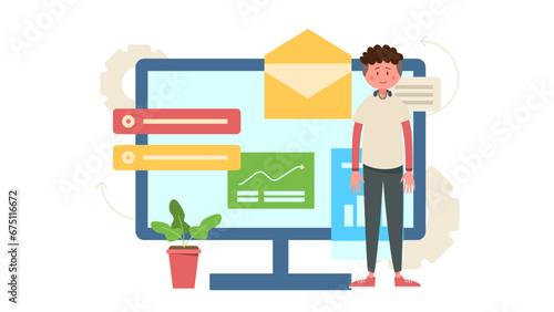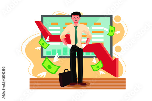 Young woman enjoying shopping. Happy girl with bunch of shopping bags in fashion boutique, flat vector illustration. Women clothing retail store business.