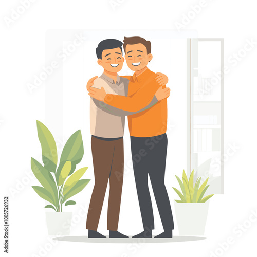 Happy grandfather and grandson playing toy game together, flat vector illustration. Grandpa with grandkid spending time together. Grandparent and grandchild relationships.