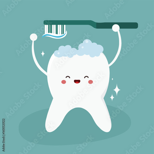 Happy healthy tooth vector icon isolated on white background