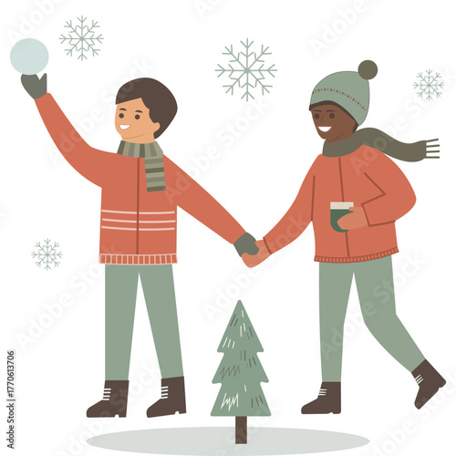 Happy man and woman characters vector icon isolated background.