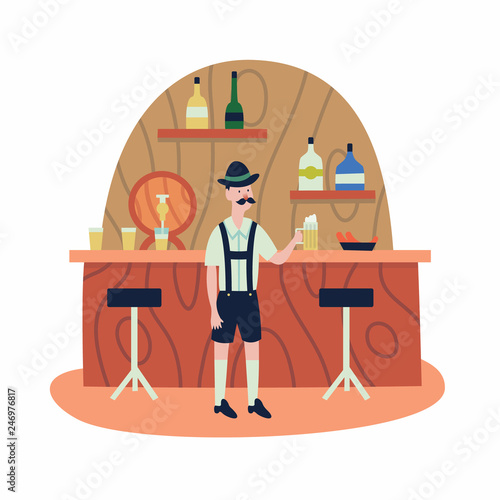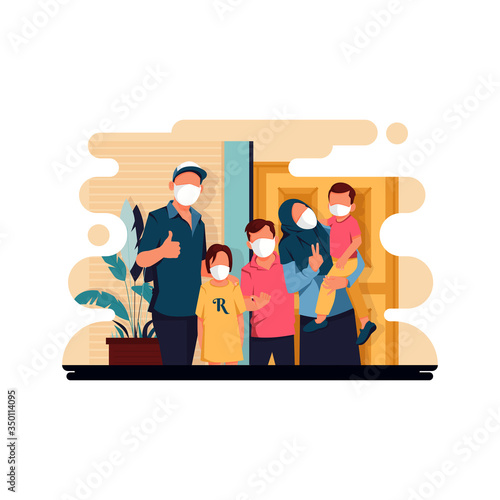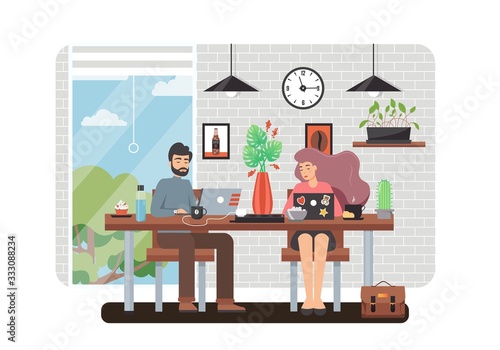Young girl sending present online for her boyfriend staying at home in quarantine, flat vector illustration. Happy man receiving giant gift box from his girlfriend. Online gift delivery service.