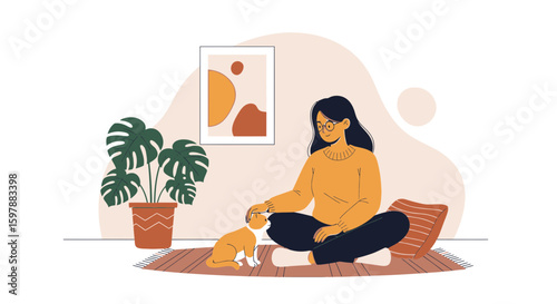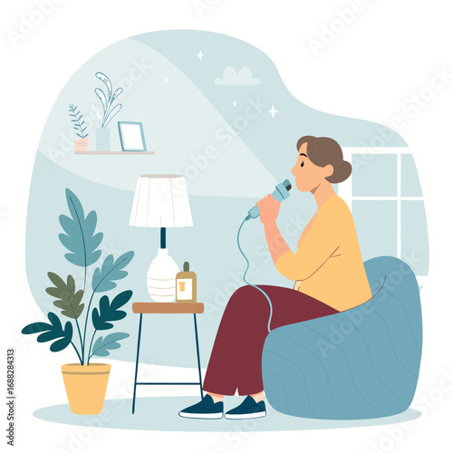 Happy mother breastfeeding her newborn baby sitting in armchair, flat vector illustration. Happy motherhood, childcare, parenting.