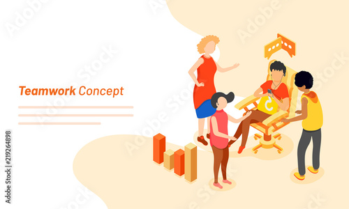 Happy mother playing with son and pet dog at home, flat vector illustration. Mom and kid spending time together. Parent child relationship, happy motherhood and parenting.