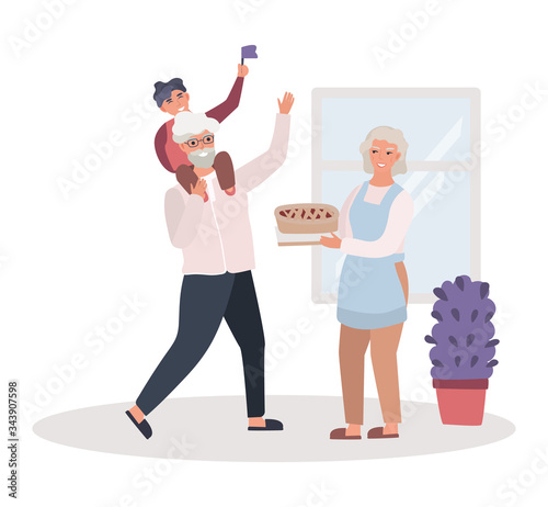 Happy multiethnic couple selfie photo by mobile phone camera vector illustration. Young hipster family picture made on smartphone. Man and woman portrait