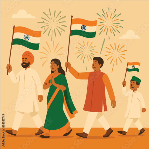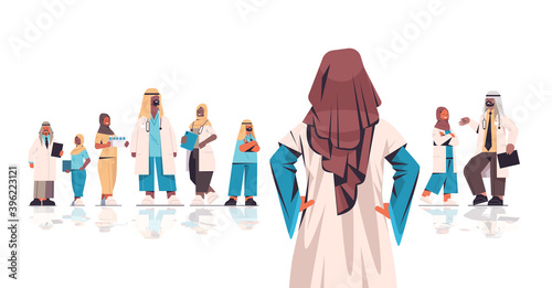 Happy muslim girl shopping in women clothing store, flat vector illustration. Young arab woman wearing traditional clothing and hijab choosing modern dress with shop assistant in fashion boutique.