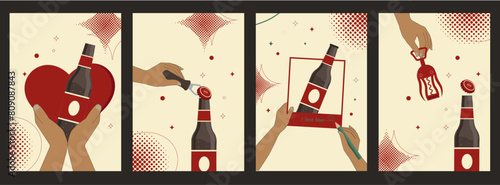 Happy people best friends gathering together at holiday party having fun leisure activity scene set. Man and woman dancing at nightclub, accessories for home feast recreation time vector illustration