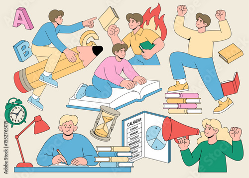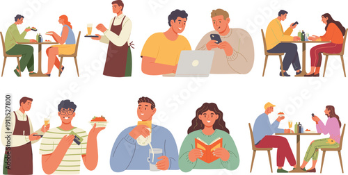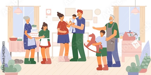 Happy people giving and receiving gifts, characters vector set. Man gives giftbox to his girlfriend for her birthday, romantic couples celebrate anniversary.