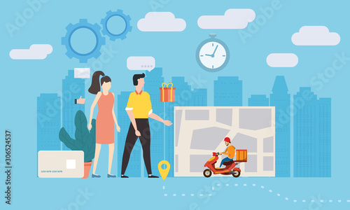 Happy people making snowman, playing snowballs, walking dogs in city park, flat vector illustration. Outdoor winter activities.