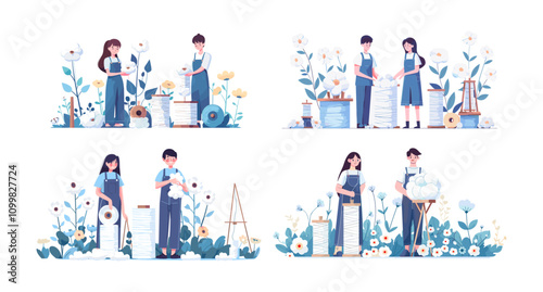 Happy new year vector poster. Excited cheerful people wearing santa hat having fun celebrating traditional winter holiday. Different tiny adults, disabled person and children over letters design