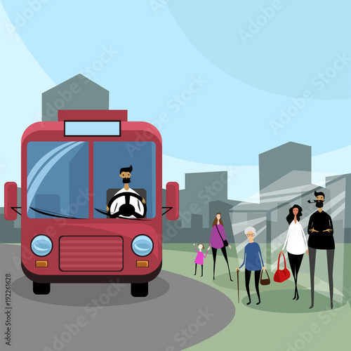 Happy schoolboy, student with backpack boarding yellow school bus, flat vector illustration. School transportation service.