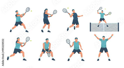 Happy sports kids isolated vector set on white. Little boys and girls playing with basketball and soccer ball, racket, training with hula hoop and jumping rope, doing active workout illustration