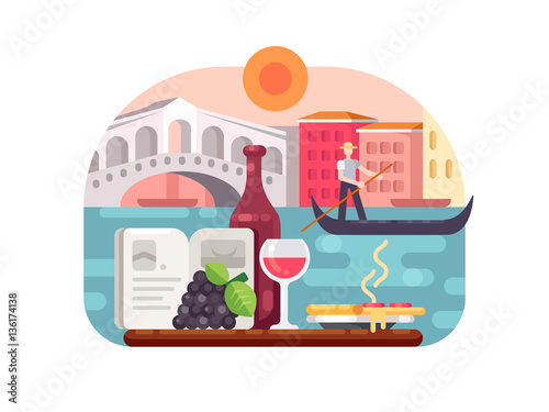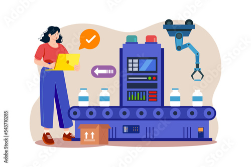Happy woman dancing at home alone. Vintage tape recorder. Concept illustration. Vector web site design template. CD disk, tape player. Woman listening music.