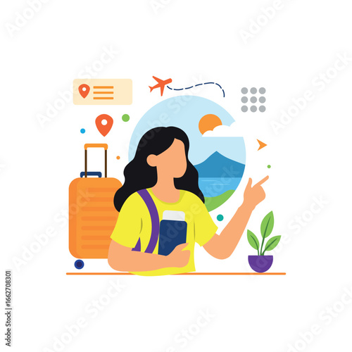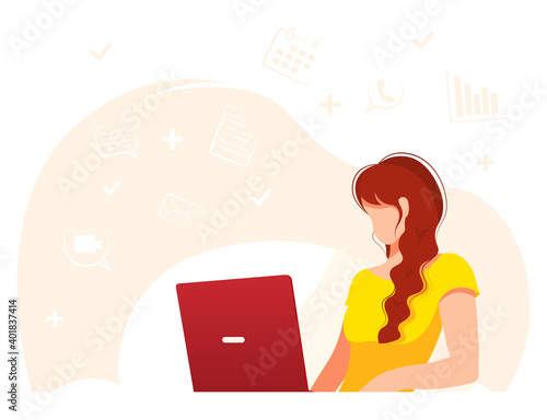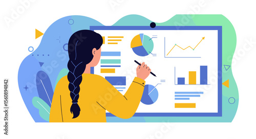 Happy woman doing shopping online using tablet, flat vector illustration. Girl making purchases online. Internet store, e-commerce.