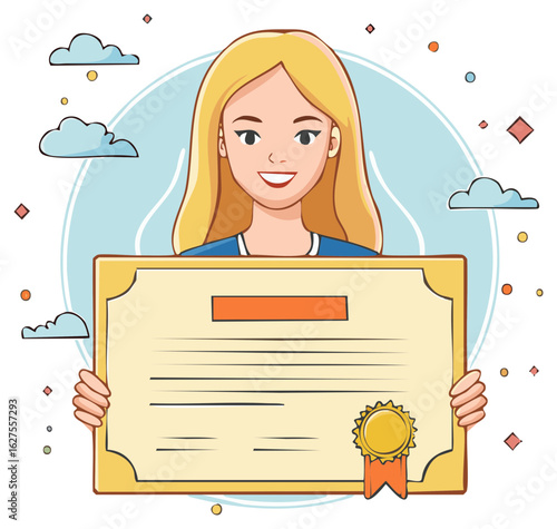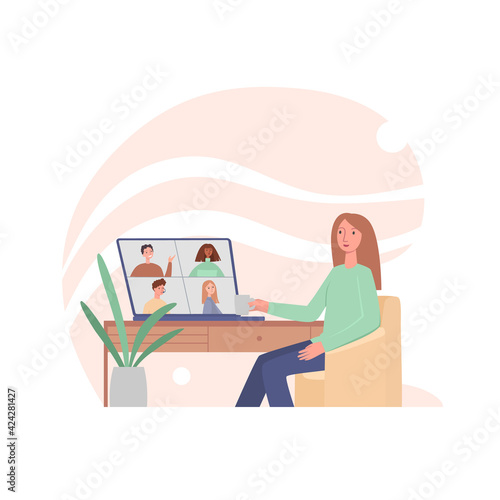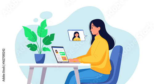 Happy woman doing shopping online using tablet, flat vector illustration. Girl making purchases online. Internet store, e-commerce.