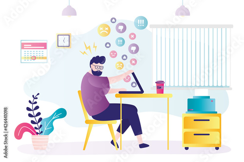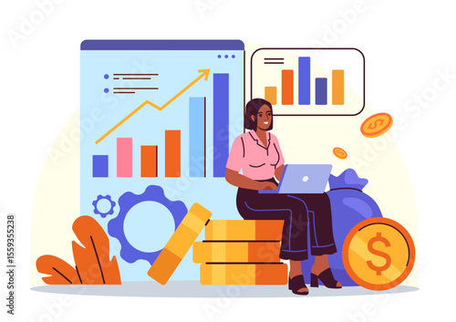 Happy woman spending free time at home. Cute girl doing gymnastics, practicing yoga in the morning, flat vector illustration. Home fitness, everyday workout routine, sport and hobby, healthy lifestyle