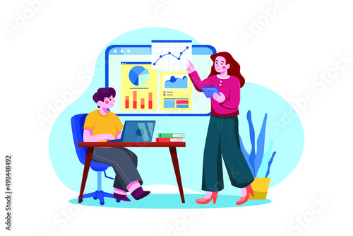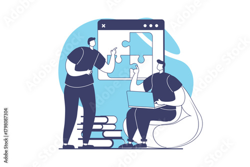 Young man sending present online for his girlfriend staying at home in quarantine, flat vector illustration. Happy woman receiving teddy bear gift from her boyfriend. Online gift delivery service.