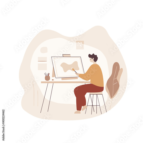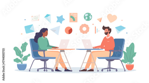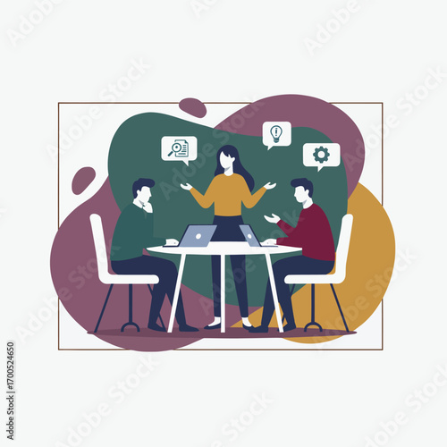Hard work concept vector flat illustration. Office situation. Unhappy tired and overworked woman sitting at table and having really bad headache. Work burnout, mental fatigue, emotional exhaustion.