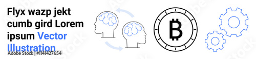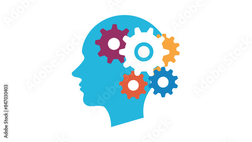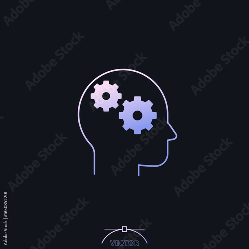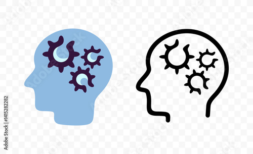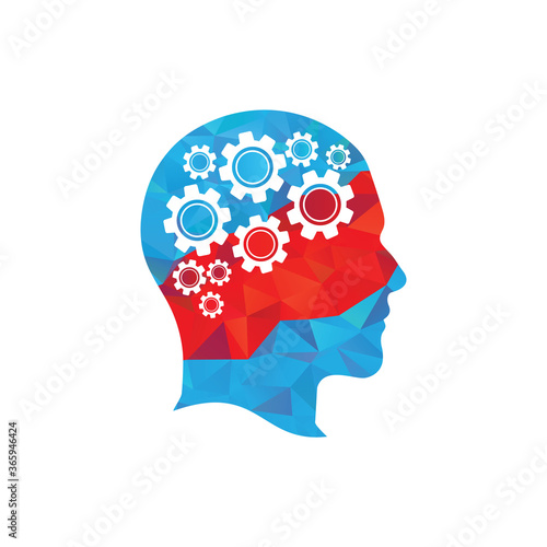 Man and woman head silhouettes with gears and flowers inside. Vector illustration in paper art style.