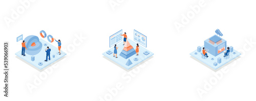 Health monitoring isometric icon set, flat vector illustration. Good sleep, checking sugar intake, reading before bedtime, getting online doctor consultation to stay healthy.