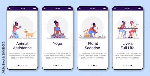 Healthy lifestyle mobile app onboarding screens. Menu banner vector template for website and application development. Athlete training, drinking protein shake, sleeping. Fitness, diet, healthy sleep.