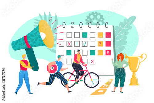 Micro male and female characters preparing huge glass of fresh organic green spinach smoothie, vector illustration. Healthy vegan nutritious vitamin beverage concept.