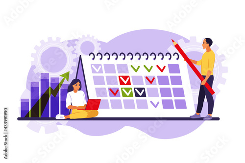 Heart activity analysis vector concept illustration. Electrocardiography, ECG or EKG procedure with patient female and medical staff characters. Healthcare, cardiology, heart examination composition.