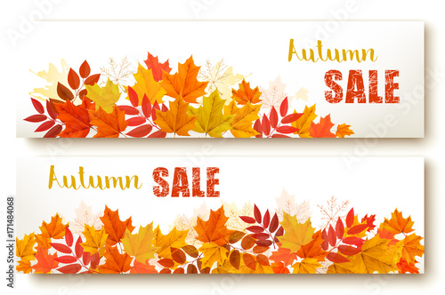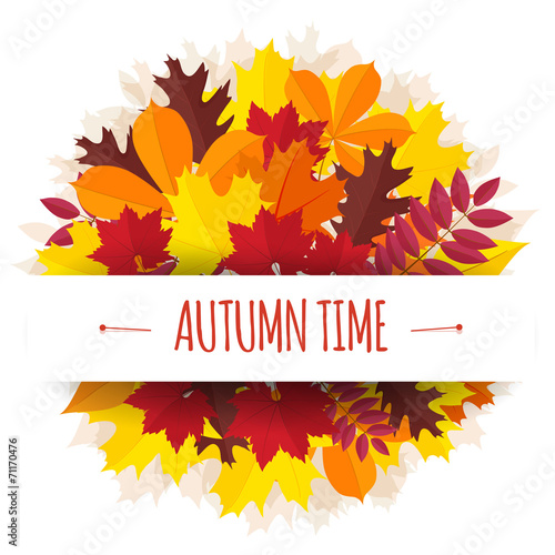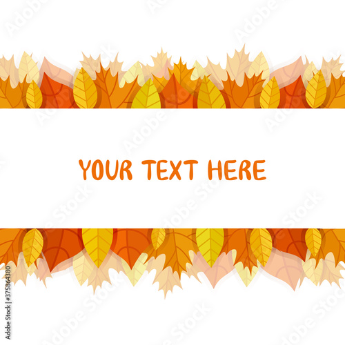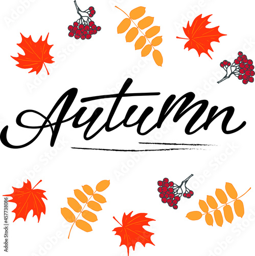 Hello Autumn card hand lettering typography, vector illustration in paper art craft style. Beautiful paper cut autumn composition with maple, oak tree leaves, hedgehog and umbrella.