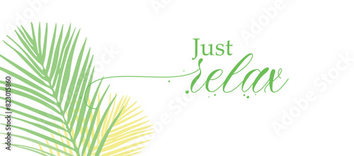 Green foliage, Hello Summer inspirational seasonal quote hand lettering typography, vector illustration in paper art craft style. Beautiful floral summer composition for poster, banner, website page.
