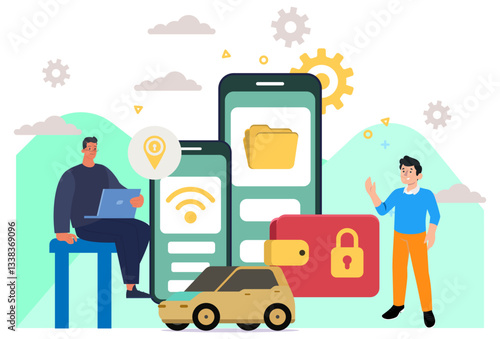 Male characters smoking joint, loading hemp delivery truck with medical marijuana capsule pills, vector illustration. Cannabis delivery, marijuana consumption concept for web banner, website page etc.