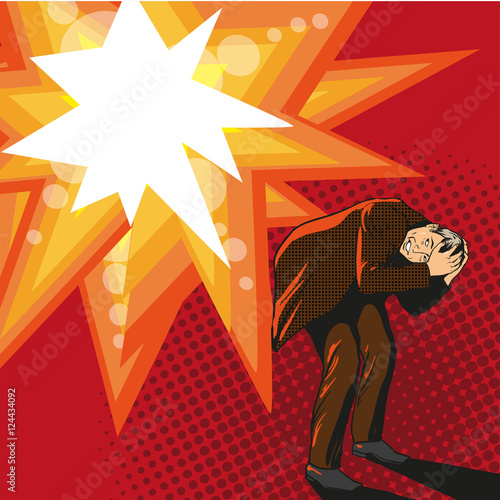High loan interest concept vector illustration in comic pop art style. Man trying to hide from explosion.