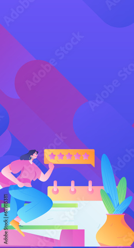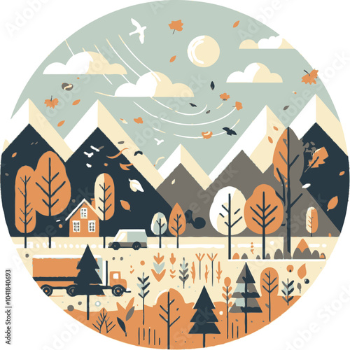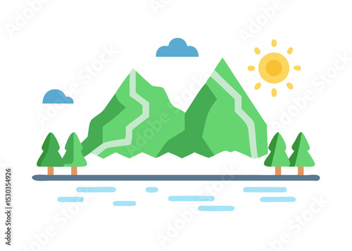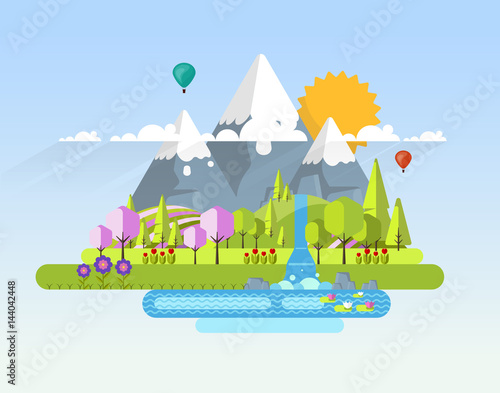 Hiking in a park isometric objects on mobile phone screen. Vector illustration in flat 3d style. Outdoor activity in mountain forest. Stay online everywhere concept illustration.