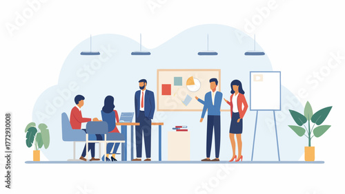 Hiring process icon set. Vector flat illustration. Employer and candidates with cv or resume. Human resources, job offer, recruitment, hr management, job interview concept.