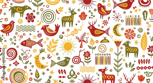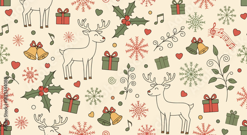 Holiday Christmas and New Year line seamless pattern. Vector illustration of wrapping paper in linear style design. Graphic icons with toys and gifts elements.