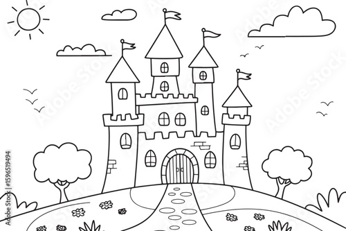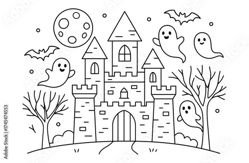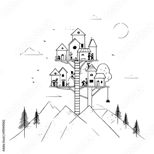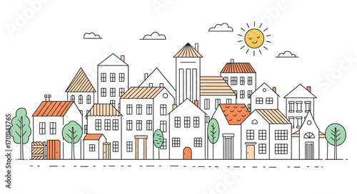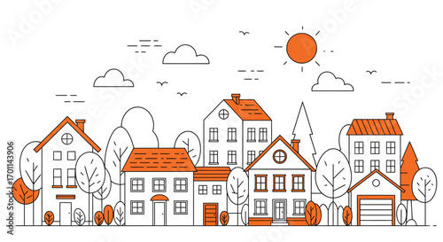 Holiday Christmas tree concept line banner. Vector illustration linear style design. Graphic icons with toys and gifts elements