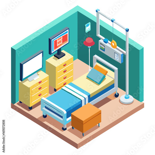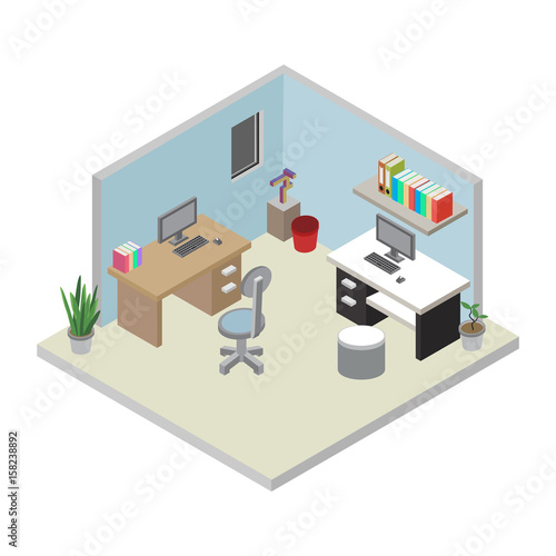 Home appliances repair service concept. Vector isometric cutaway kitchen interior with repairman service center employee repairing or installing electric stove.