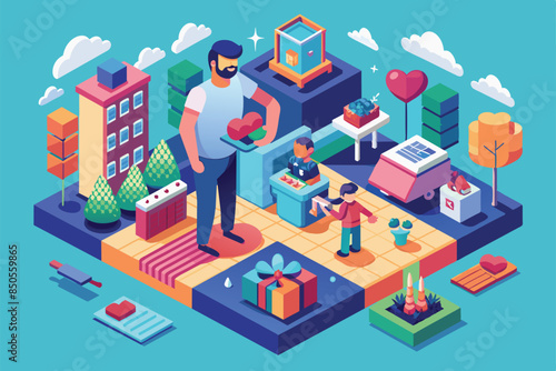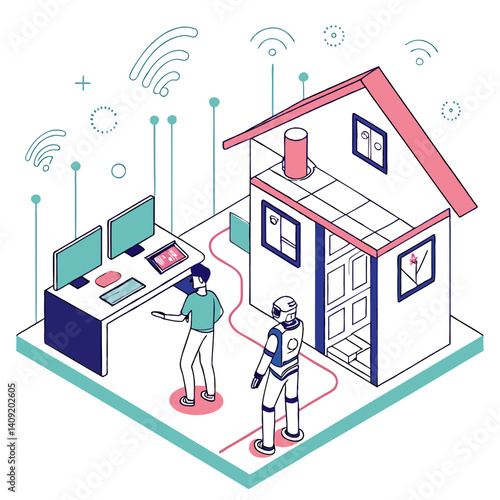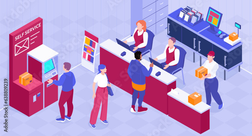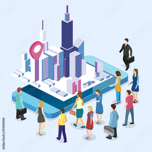 Home auction, vector illustration. Isometric residential house building, auctioneer with gavel and people with bid paddles. Auction and bidding composition for web banner, website page etc.