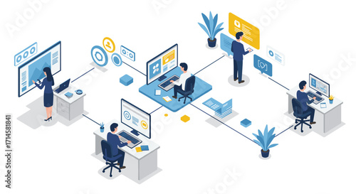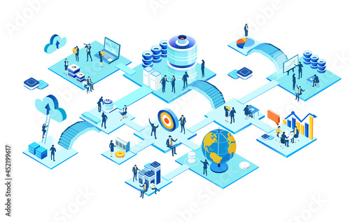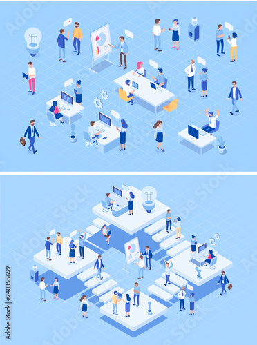 Home comfort, flat vector isometric illustration. Furniture placement. Interior design and unloading services.