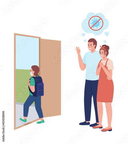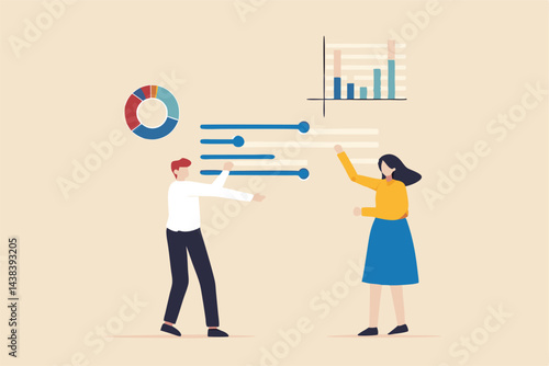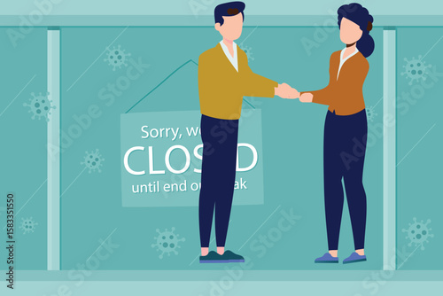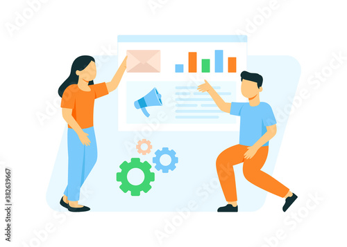 Vector illustration of man delivering goods in cardboard boxes to buyer female. Home delivery services flat style design element.
