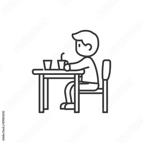 Home office interior with coffee-table, laptop computer and armchair vector icon isolated on white background. Viral pandemic concept.